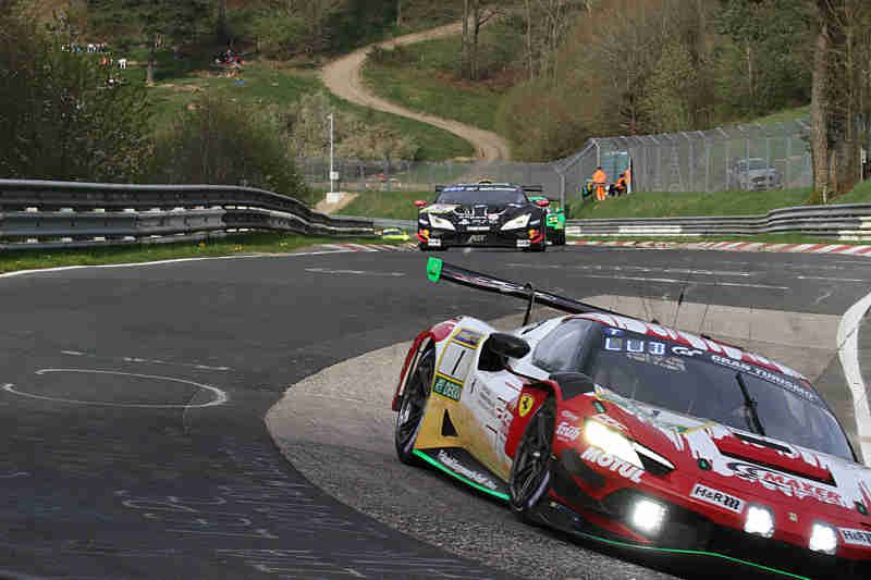 Die Freude über Platz zwei währte jedoch nur kurz, denn das Duo erhielt nach dem Rennen eine Zeitstrafe von 32 Sekunden für das Überholen unter Gelber Flagge und fiel bis auf fünf zurück. Platz zwei erbten Ayhancan Güven und Thomas Preining im Elfer von Manthey EMA, die sich dem Falken-Porsche auf der Strecke noch um 0,203 Sekunden geschlagen geben mussten. Platz drei erbten Frank Stippler, Christopher Mies und Ricardo Feller im Audi R8 LMS GT3 evo II von Scherer Sport PHX.